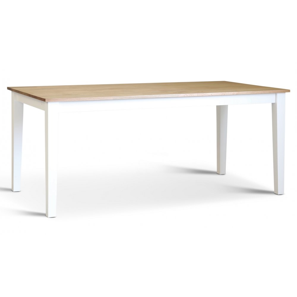 Dalsland matgrupp: Matbord i vit / ek med 6 st Tuva stolar i blå sammet