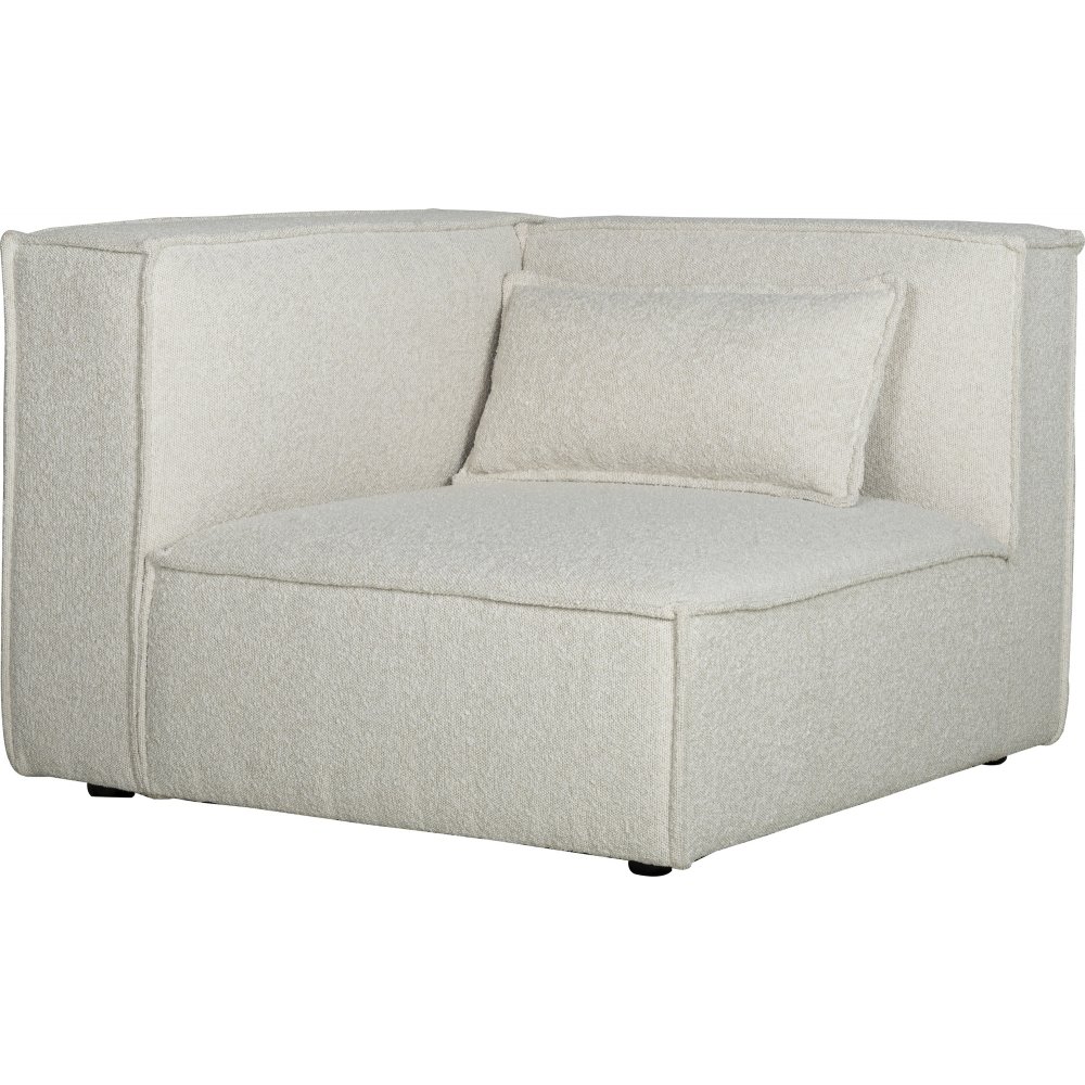Modulsoffa i 3 delar, klädd i vitt bouclétyg. Soffan består av 2 st hörnor och en sittpuff/divan. Systemet Nees tillåter att bygga olika kombinationer.