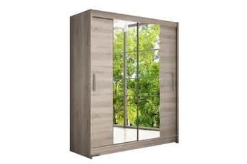 Leila Garderob 150 cm Skjutdörrar Svängd Spegel, Ek/Spegel