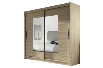 Prag Garderob 180 cm Skjutdörrar Delad Spegel, Beige/Trä/Natur