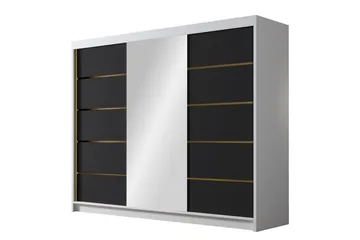 Cyria Garderob med rymlig Förvaring och Skjutdörrar med Spegel 200x215 cm, Svart/Vit