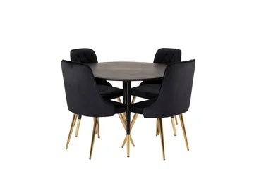 Dipp Matgrupp 115 cm Rund med 4 Plaza stolar, Svart/Guld