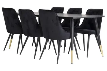 Dipp Matgrupp 180 cm Rektangulär med 6 Plaza stolar, Svart/Guld