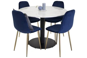 Dipp Matgrupp 115 cm Rund med 4 Polar stolar, Svart/Guld
