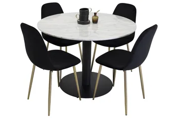 Estelle Matgrupp 106 cm Rund med 4 Polar stolar, Svart/Guld