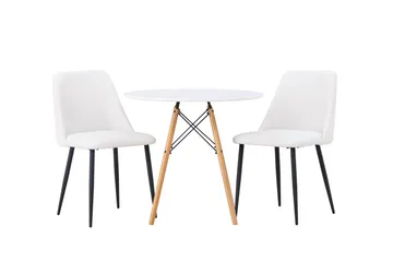 Leonora Matgrupp 65 cm Rund med 2 Edvin stolar, Vit