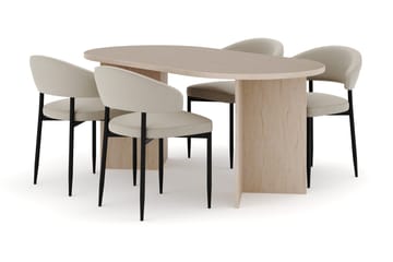 Uppveda Matbord Travetin utseende med 4 st Jaiveer Matstolar, Beige