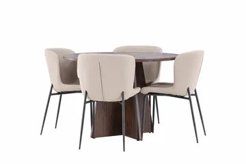Bootcut Matgrupp 110 cm Rund med 4 Leone stolar, Mocca/Beige