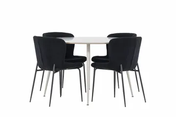 Lanzo Matgrupp 120 cm Rund med 4 Berit stolar, Whitewash/Svart
