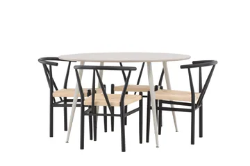 Lanzo Matgrupp 120 cm Rund med 4 Modesto stolar, Whitewash/Svart