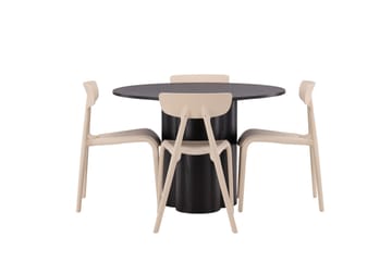 Lanzo Matgrupp 120 cm Rund med 4 Selma Stolar, Svart
