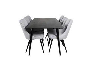 Dipp Matgrupp 180 cm Rektangulär med 6 Velvet stolar, Svart
