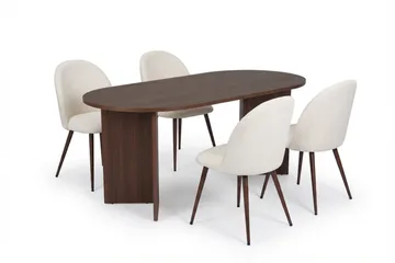 Dano Matbord 180 cm med 4 Nibe Plus Matstolar, Vit/Brun