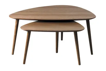 Satsbord Wohnling Set om 2 njurformad, massivt trä, träben, lantstil mörkbrun, mörkbrun