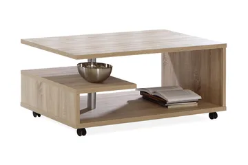 Nabinger Soffbord 105 cm med Förvaring Hyllor på Hjul, Ek