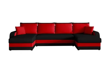 Alvared 4-sits B äddsoffa med Dubbeldivan med Förvaring, Röd/Svart