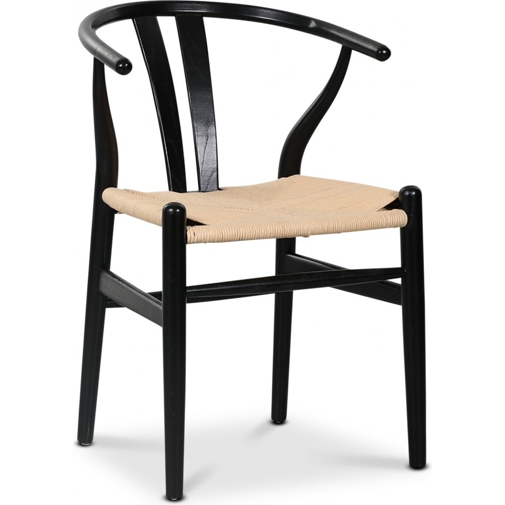 Inklusive 4 st Sunda klassisk matstol i karm-modell med svartlackad stomme i almträ och sits av flätat papperssnöre. Levereras monterad.