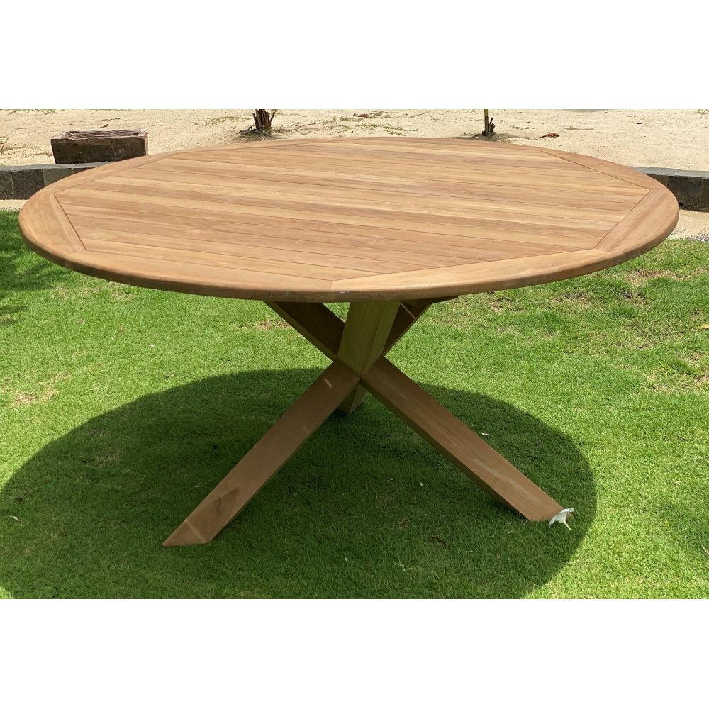 Matgrupp Saltö: Saltö runt bord Ø150 cm inklusive 6 st hopfällbara teakstolar i klassisk design.