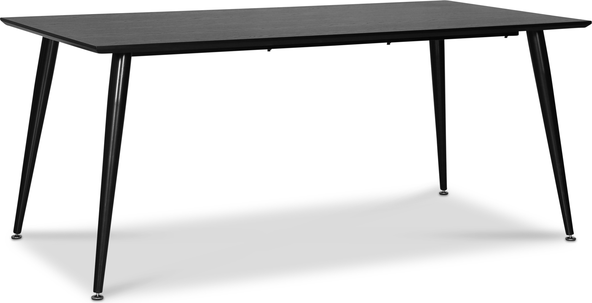 Slope är en klassisk matgrupp, bord med toppskiva av MDF/fanér, svartbetsad ekfanèr. Stabila svarta metallben med rund justerbar golvplatta nedtill på varje bordsben för att stå stadigt.