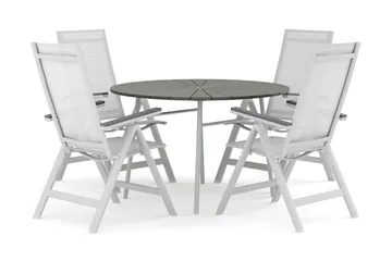 Landet Utomhus matgrupp 118x70x74 cm med 4 klappstolar, Vit