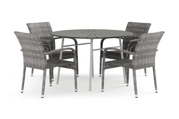 Marcus utomhus matgrupp 160x90 cm med 4 Marcus utefåtöljer, Grå