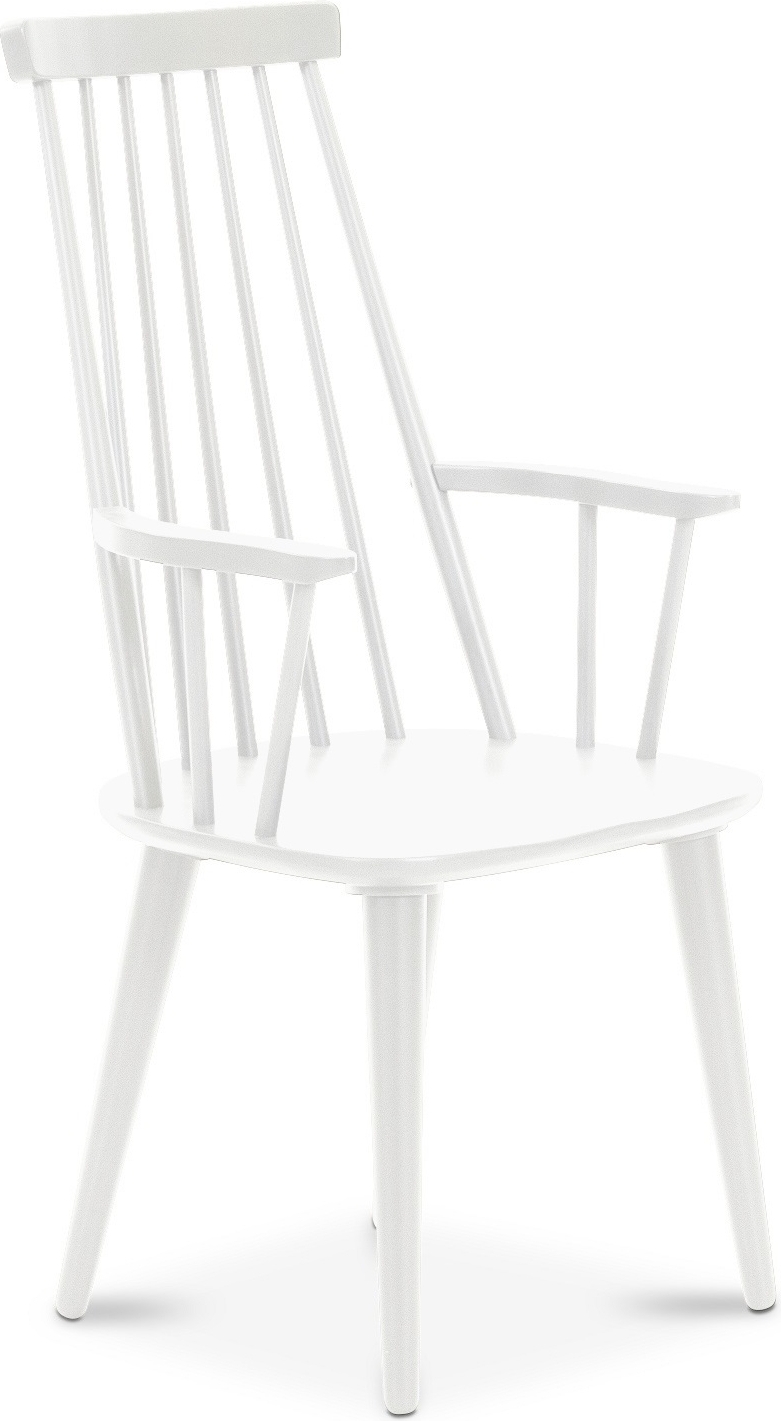 Matgrupp från Skånska Möbelhuset, Klassiskt runt matbord Rosvik 120 cm diameter i grålackat trä. Fyra stycken vita Dalsland Pinnstolar med armstöd!