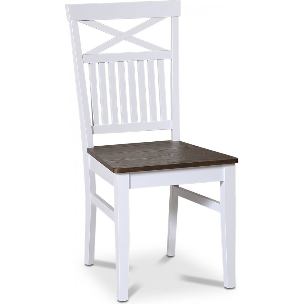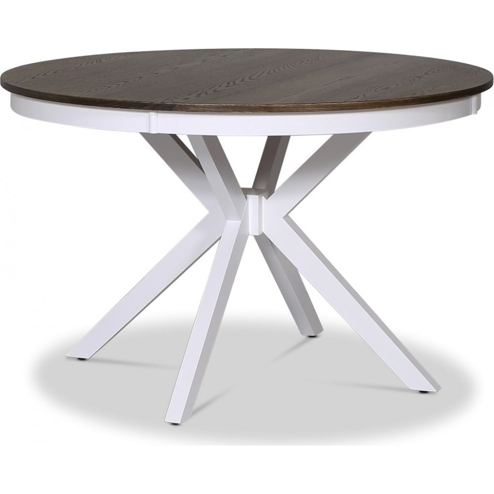 Skagen matgrupp; runt matbord Ø120 cm - Vit / brunoljad ek med 4 st Skagen stolar (Kryss i ryggen) med brunoljad eksits