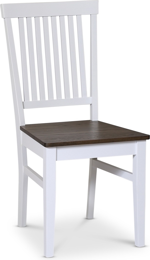 Skagen matgrupp; runt matbord Ø120 cm - Vit / brunoljad ek med 4 st Skagen stolar (Ribbor i ryggen) med brunoljad eksits:
