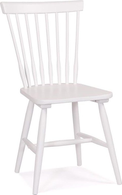 Fin pinnstol med krispig vit färg. Gör sig bra i vår matgrupp med blandade stolar.