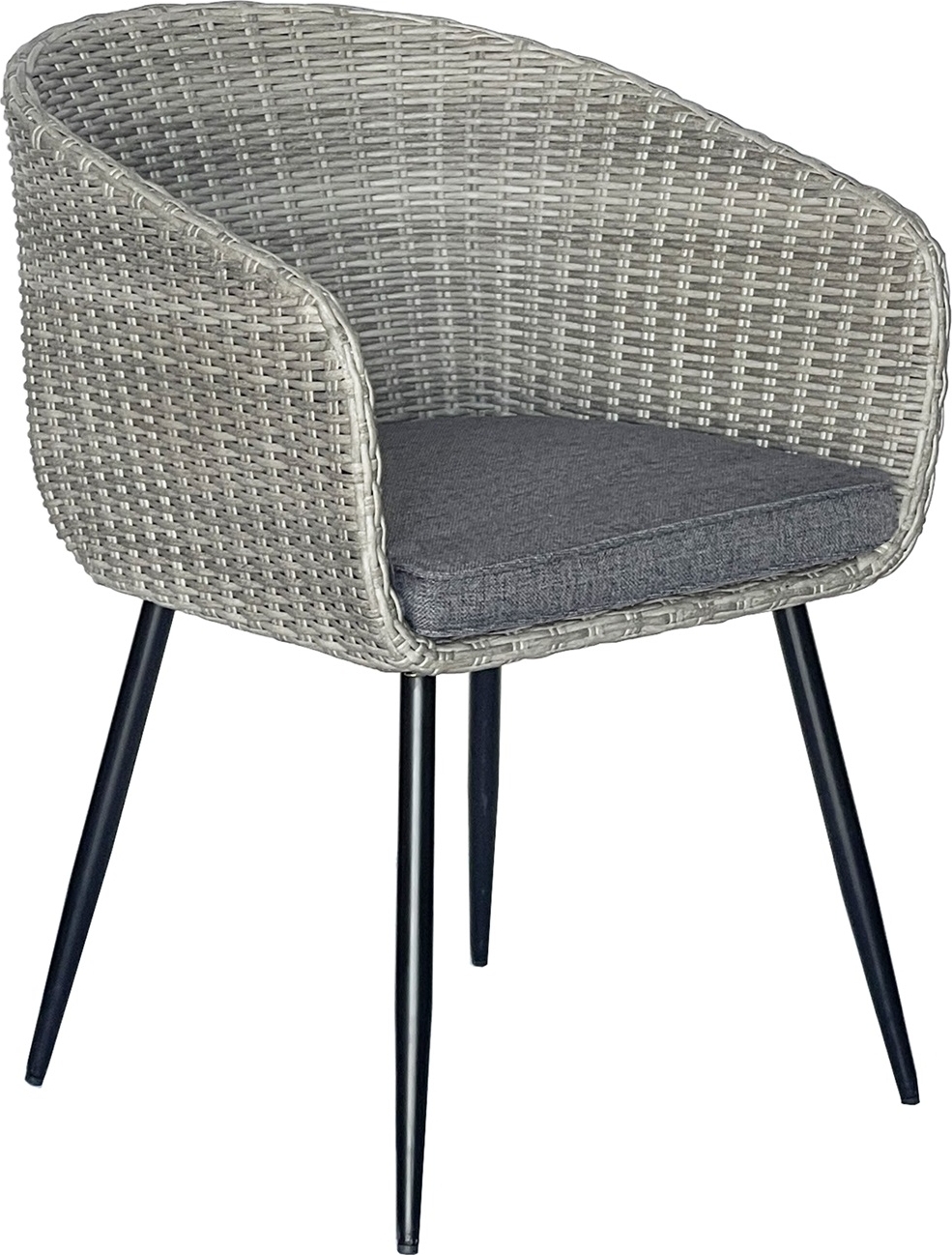 Utegrupp Aster: Scottsdale runt grå/vit matbord Ø112 cm inklusive 4 st Aster karmstolar i grå konstrotting