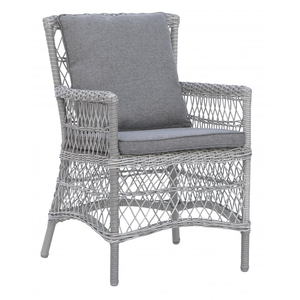 Utegrupp Provence: Scottsdale runt grå/vit matbord Ø112 cm inklusive 4 st Provence karmstolar i grå konstrotting