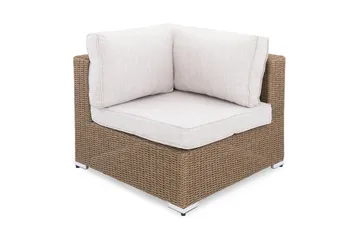 Marcus Hörnmodul utomhus med Dyna i konstrotting, Natur Beige / Vita dynor