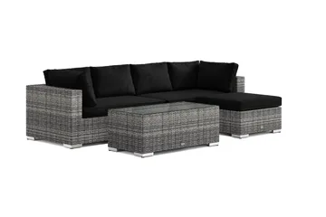 Bahamas utomhus hörnsoffa 5-sits vändbar med öppet avslut och bord, Svart