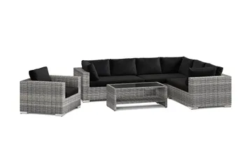 Bahamas utomhus L-soffa vänster 7-sits med fåtölj och bord med hylla, Grå