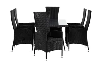 Monaco Matgrupp Utomhus 152-210x90 + 6 Jenny Fåtölj Ställbar m Dyna, Svart/Grön