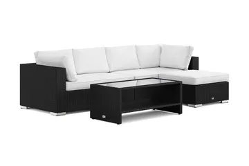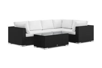 Bahamas L-formad utesoffa höger, 6-sits med bord, Svart