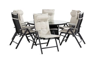 Thor Matgrupp 140 Rund + 6 Monaco Positionsstol m Dyna, Svart/Grå/Offwhite