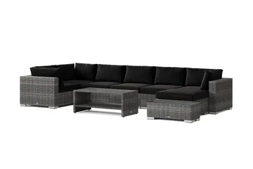 Bahamas utesoffa 6-sits vändbar schäslong med avslut och bord, Svart