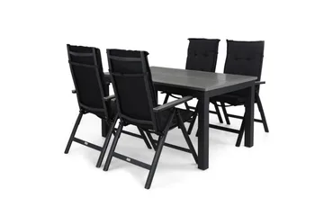 Monaco Matgrupp Utomhus 152-210 + 4 Positionsstol Lyx, Svart/Svart
